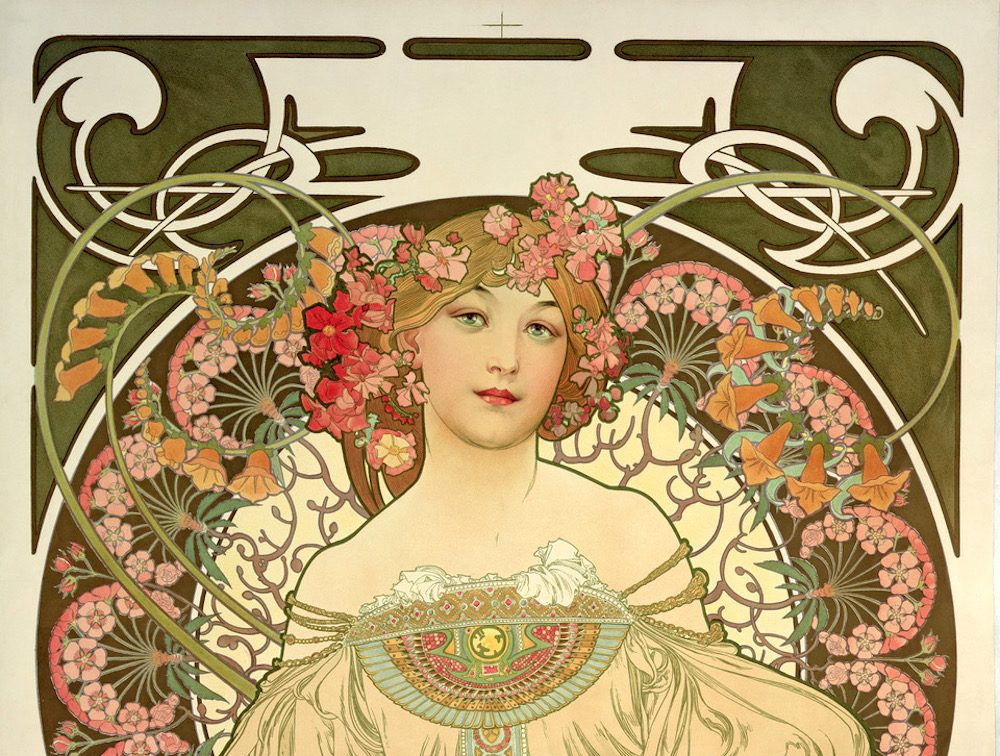 Alphonse Mucha est né en 1860 en Moldavie du Sud, alors sous domination autrichienne. Après des études à l’Académie des Beaux-Arts de Munich en 1885, à l’automne 1887, il s’installe à Paris pour étudier à l’Académie Julian puis à l’Académie Colarossi, l’année suivante. En 1889, il commence à travailler comme illustrateur pour des revues, des livres ou des journaux pour subvenir à ses besoins dans le Paris de la Belle Epoque. En 1891, il fait la connaissance de Paul Gauguin avec qui, il entretiendra une amitié sincère et avec qui, tous les deux sans le sou, il vivra en coloc’ à Paris.