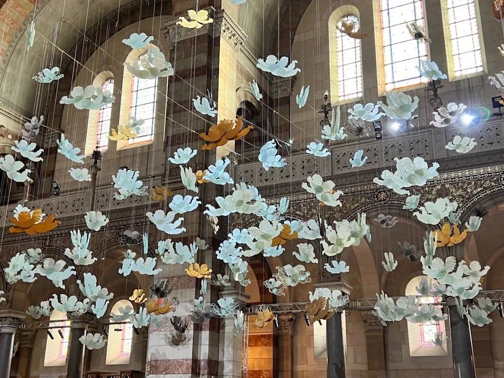 La symbiose entre l’œuvre de Marcoville et cette cathédrale du 19° siècle est parfaite. L’harmonie est évidente et le résultat est un pur joyau visuel.