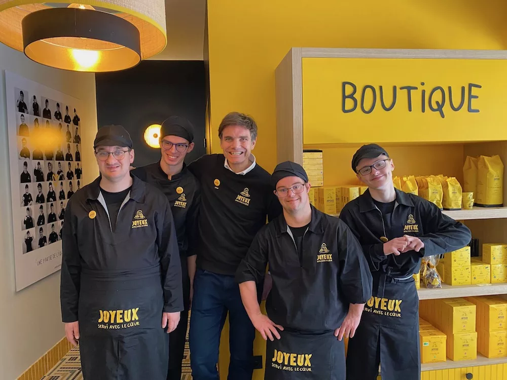 Les Cafés Joyeux sont des cafés-restaurants qui emploient et forment des personnes avec handicap mental ou cognitif. Ce sont des personnes neuro atypiques qui ne sont pas recrutées sur leurs compétences mais sur leurs motivations et leur désir de progresser.