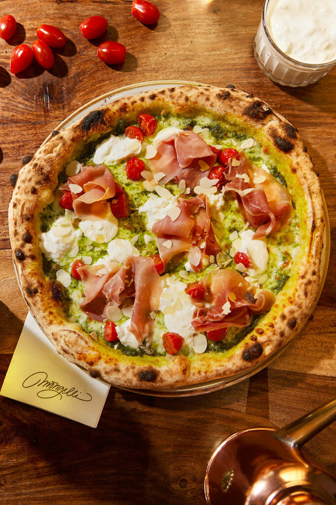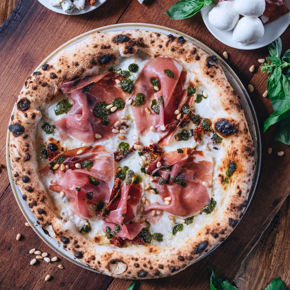 Chaque mois une pizza inédite est proposée. En ce mois de juillet, les clients pourront se régaler avec une création mêlant mozzarella di bufala, huile d’olive, tomates semi- séchées, gorgonzola et après cuisson, jambon de Parme, pignons de pin et sauce basilic maison.