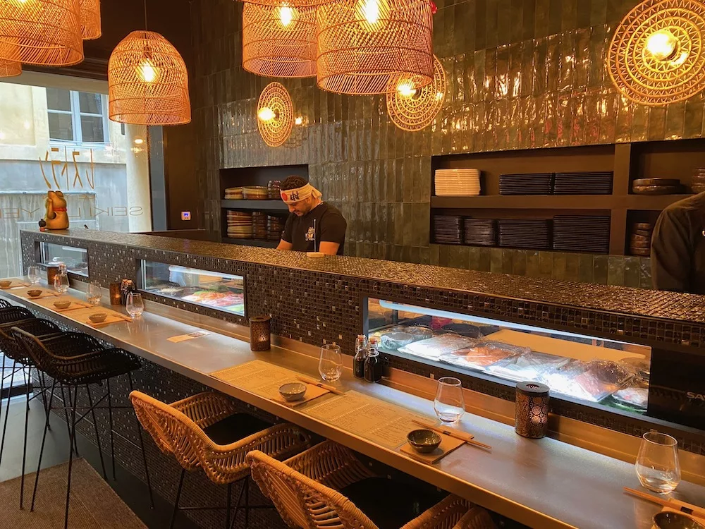 En ce qui concerne les plats japonais, on retrouve les classiques yakisoba (nouilles sautées), les yakitori (brochettes) ou encore les ramens. Le restaurant possède aussi une grande variété de sushis préparés en live par les chefs au sushis bar. La qualité des sushis se retrouve dans l’attention particulière portée au sourcing des poissons sélectionnés auprès d’un pêcheur marseillais.