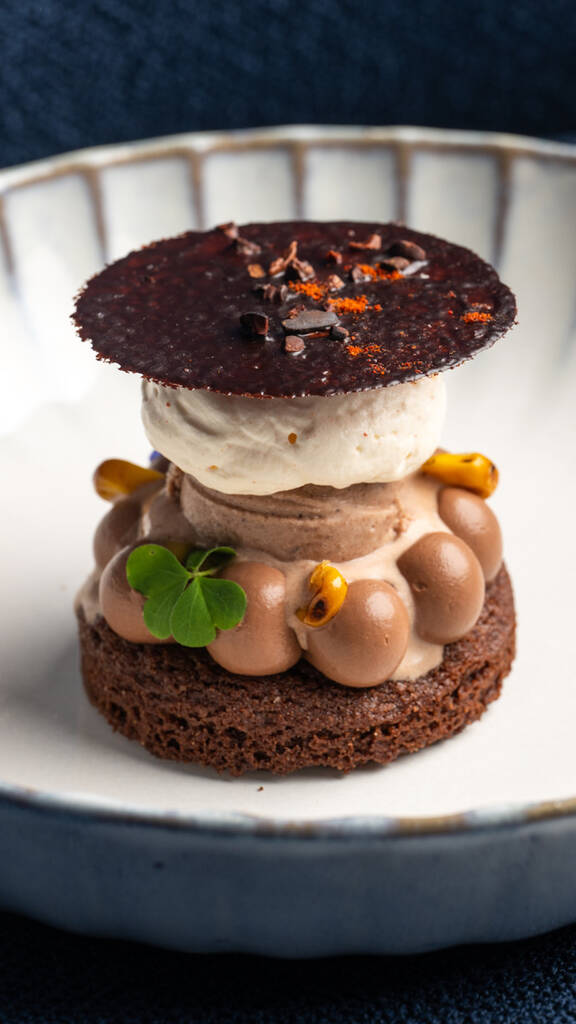 Les desserts sont à tomber comme par exemple la compote de framboise, gingembre, sorbet pêche, émulsion Proseco et salicoque iodée qui est une création originale et succulente d’Ilane Tinchant. Tout comme le dessert final composé d’une galette bretonne avec du chocolat et un zeste de paprika qui explose en bouche comme un feu d’artifice. La cuisine d’Ilane Tinchant est précise, maîtrisée. Le chef joue sur les textures de cuisson (grillé, macéré ou poché …). Il est très doué pour les fonds, les jus et les sauces légères et réussit aussi bien les grands classiques du répertoire gastronomique que ses propres créations.