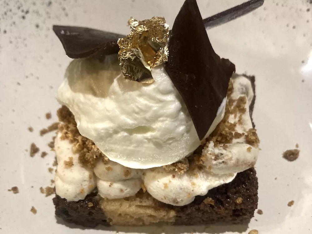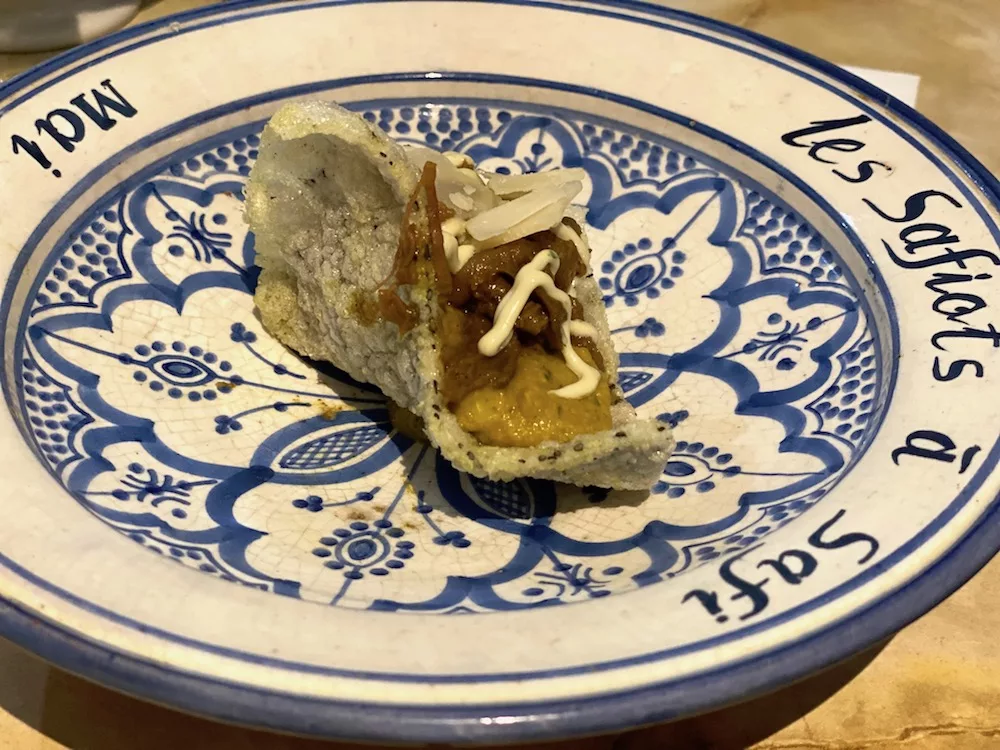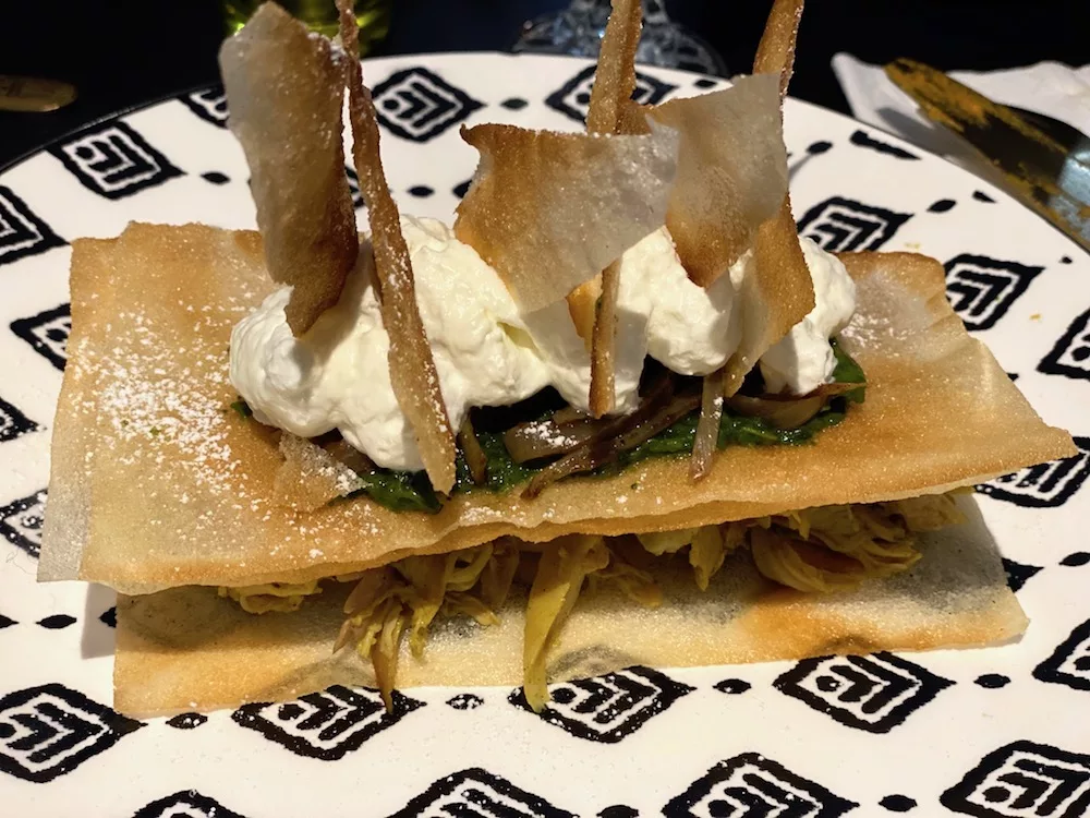 Pour ne vous donner que deux exemples et vous faire venir l’eau à la bouche, je ne citerai que: le Mille feuilles de pastilla au poulet citron confit, épinards à la crème, oignons caramélisé à la cannelle, chantilly à la fleur d’oranger et l’Opéra revisité génoise imbibée de kawa aux épices, avec mascarpone sucré à la datte, halva, chantilly à la fleur d’oranger et chocolat noir…