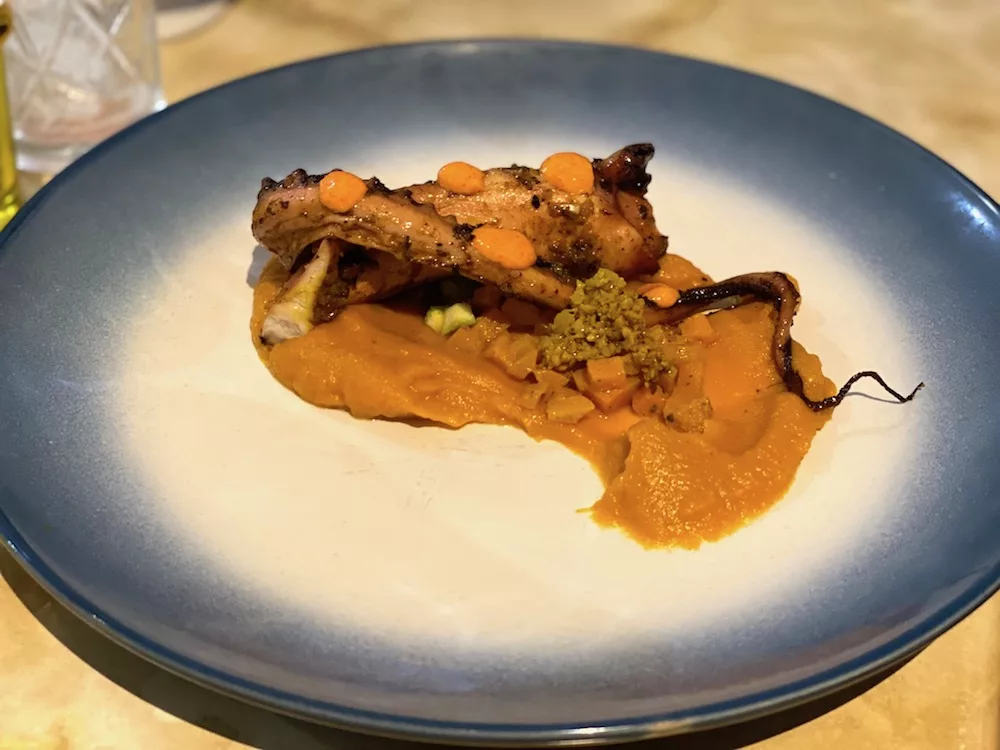 Un lieu sans tralalas où elle accueille ses clients «comme à la maison», tout en gardant un œil sur eux car sa cuisine est ouverte sur la salle, afin de s’assurerque rien ne perturbe leur voyage et leur exploration culinaires. «Comme à la maison», dans sa manière chaleureuse de recevoir, mais avec beaucoup de professionnalisme, de rigueur et d’exigence dans la sophistication qu’elle apporte à la présentation de ses plats. Le dressage de ses plats est élaboré, extrêmement soigné et il est évident qu’elle a travaillé et fait ses classes dans des établissements de haut-de-gamme.