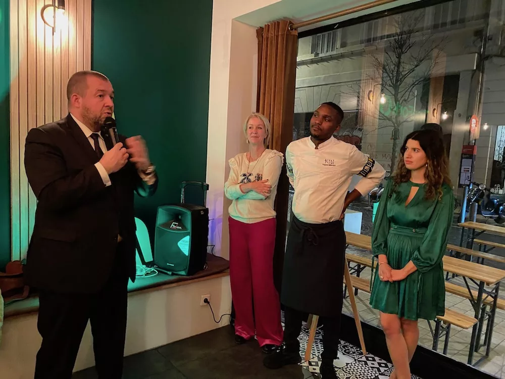 C’est au restaurant Kin que vient d’avoir lieu une soirée entre chefs, professionnels de la gastronomie et institutionnels, lors d’un cocktail dînatoire d’exception réalisé par le chef, Hugues Mbenda. L’événement était organisé par TheFork.