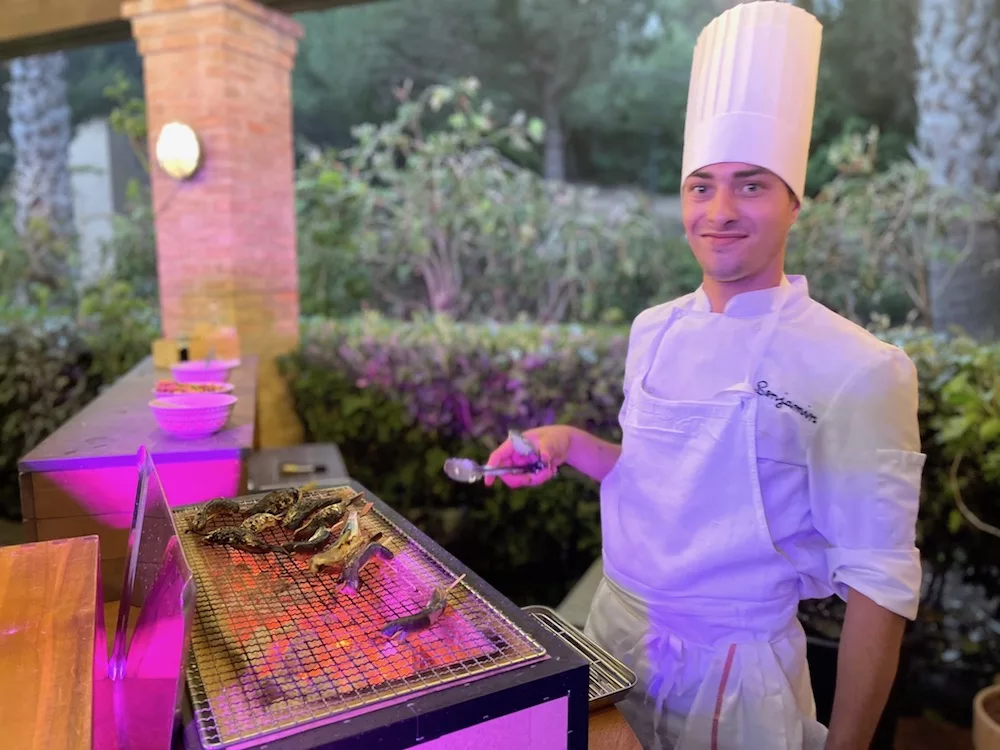 Les personnes présentes purent ainsi découvrir en avant-première une carte de tapas savoureuses, véritable ode au monde marin et végétal où le soleil s’invite dans l’assiette et l’art de la table. Le Chef Exécutif Nicolas Ballin et ses équipes s’engagent à cuisiner avec simplicité et transparence, en mettant en avant le terroir varois et ses valeurs fortes à travers une cuisine saine, équilibrée et respectueuse de l’environnement. Sa carte de tapas à partager, aussi gourmande qu’estivale, met à l’honneur les épices, les légumes et les produits de la mer. Côté jardin, il propose des délices ingénieusement préparés comme l’artichaut poivrade, la gaufre aux accents provençaux et les brocoletti en tempura. Côté mer, il propose un ceviche délicieux et des sardines dorées à la flamme. Des plats résolument ensoleillés.