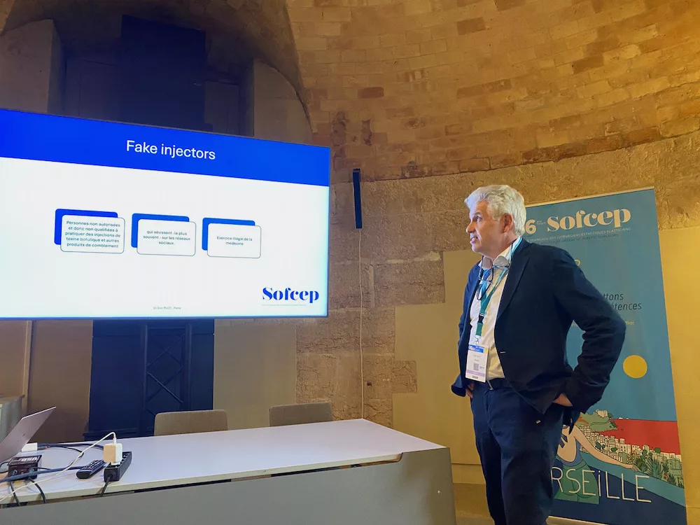 Le Dr Eric Plot qui succèdera très prochainement au Président, Jean-Luc Jauffret a insisté, lui aussi, sur les dangers des Fake Injectors, qui sont un réel danger car les interventions sont réalisées dans des conditions sauvages (conditions d’asepsie non respectées, locations d’appartements éphémères sur Airbnb dont l’adresse circule sur instagram, produits achetés sur le Dark-Web etc… Il a notamment évoqué les risques de nécrose et d’infection.